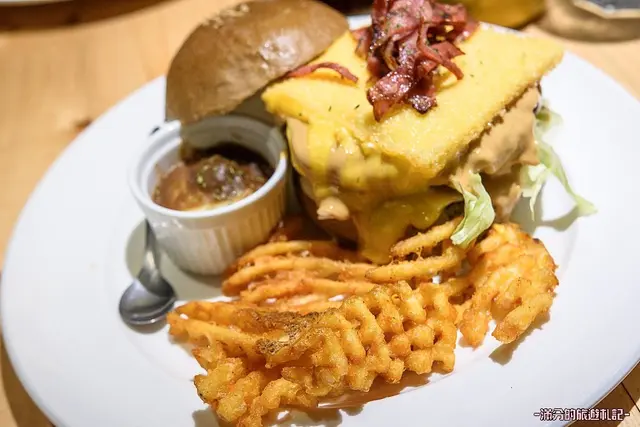 花生醬培根起司醬牛肉堡 $260+現炸起司 $30
