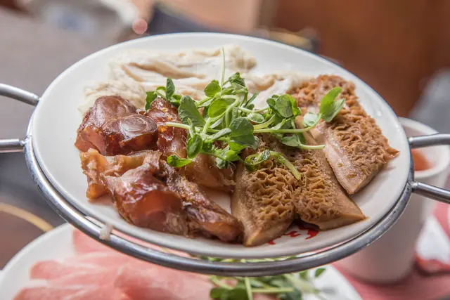 吃麻辣鍋一定要的滷水,綜合滷水拼盤裡面有大腸、牛肚、牛筋,建議一開始就可以放進麻辣鍋裡煮,煮個20~30分鐘再吃會更入味好吃唷