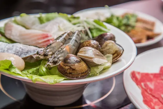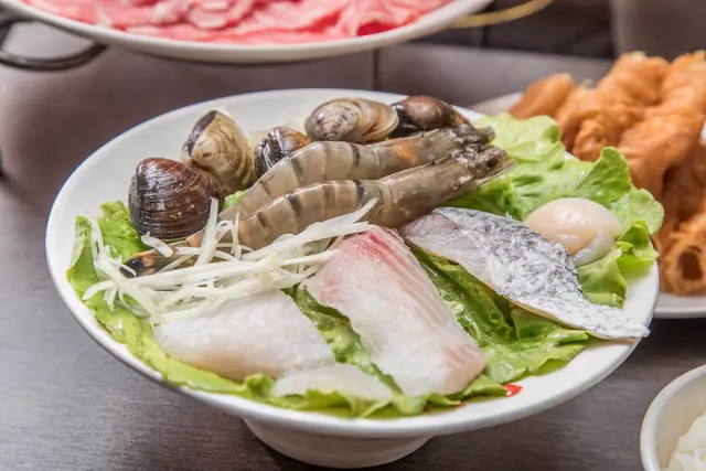 草蝦、鯛魚、蛤蜊、干貝、鱸魚、多利魚,新鮮度都很棒,一般來說像這類平價鍋物海鮮咬咬通常都不大期待,但紅九九個人鴛鴦鍋食材的挑選確實有它的堅持,分量鮮度都在水準之上,放心點吧!