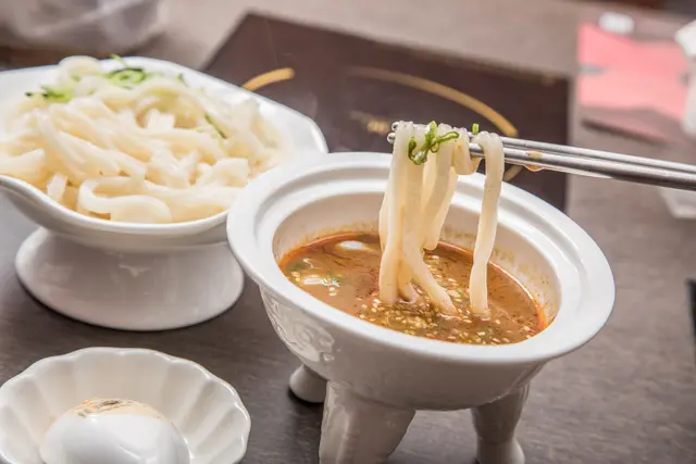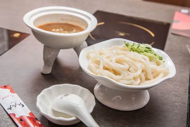 附餐可以選手工拉麵、冬粉、米飯,王子麵或是年糕,但強烈加價29元升級麻辣沾麵,麻辣沾麵是延吉店限定,沾麵醬汁是麻辣鮮香的沾醬,搭配口感Q彈的烏龍冷麵,入口麻辣香氣十足,冷麵滑溜Q勁十足,好吃又特別!