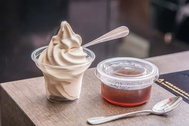 飯後甜點有霜淇淋跟梅子凍,梅子凍是紅九九自製的,還吃的到梅子果肉呢