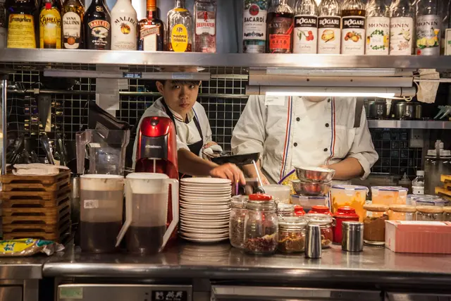 開放式的廚房,可以看見主廚在廚房裡忙碌著