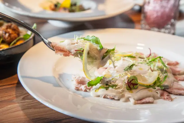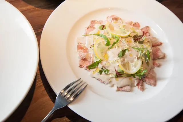 不過當你入口你會為其深深感動,牛肉吃起來軟嫩無比,鮪魚醬濃稠的沾附在牛肉之上,一定要加點黃檸檬一起入口,藉由檸檬的酸香來中和鮪魚醬濃郁的味道,讓牛肉的甜度得以展現釋放,酸、甜、鮮三位一體,絕妙!