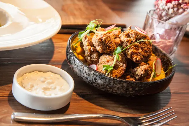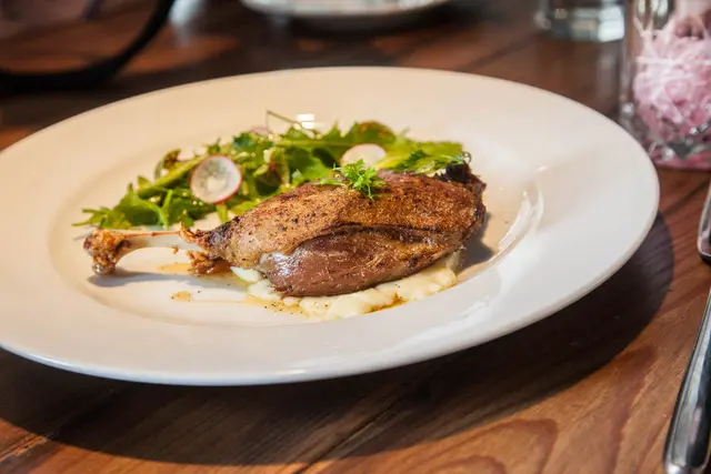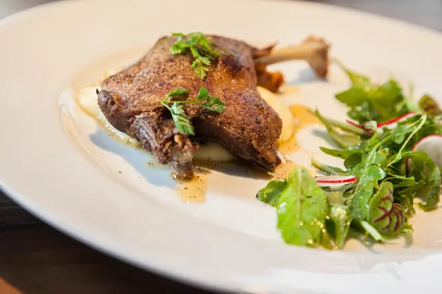 好米亞餐酒館的經典菜式,厚實多汁的鴨腿肉以傳統低溫油封長時間製法,完整封存肉質的美味精華,上桌前再將鴨皮香煎,下面鋪上澄香醬及薯泥