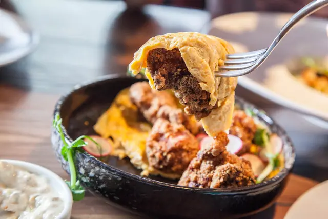 裹著蛋皮一起吃,酥脆鹹香中還帶著蛋香,口感十分有層次