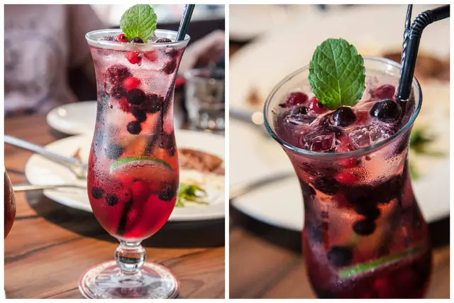 不喝酒的朋友也有許多特調無酒精飲料可以選擇,朋友點的小清新接骨木氣泡飲(蔓越莓),莓果在沁涼的氣泡飲中漂浮,光看就覺得清涼