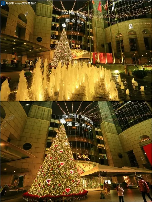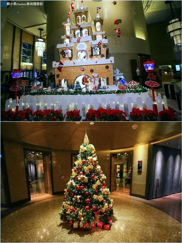 遠企購物中心外觀時尚,佈置了超高大的聖誕樹,燈光炫麗溫暖,飯店大廳挑高開闊,