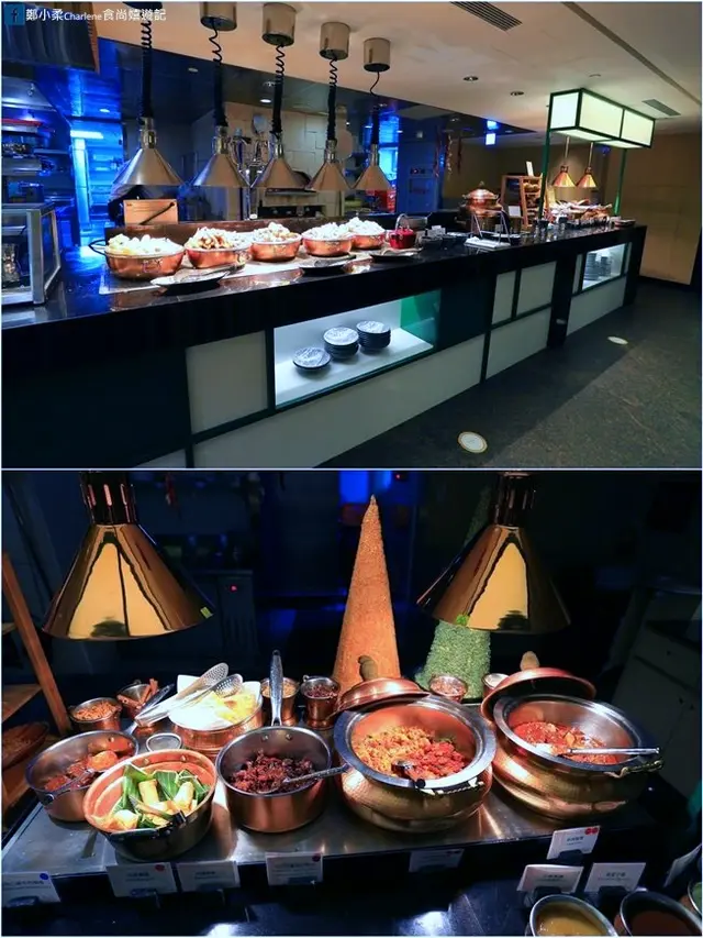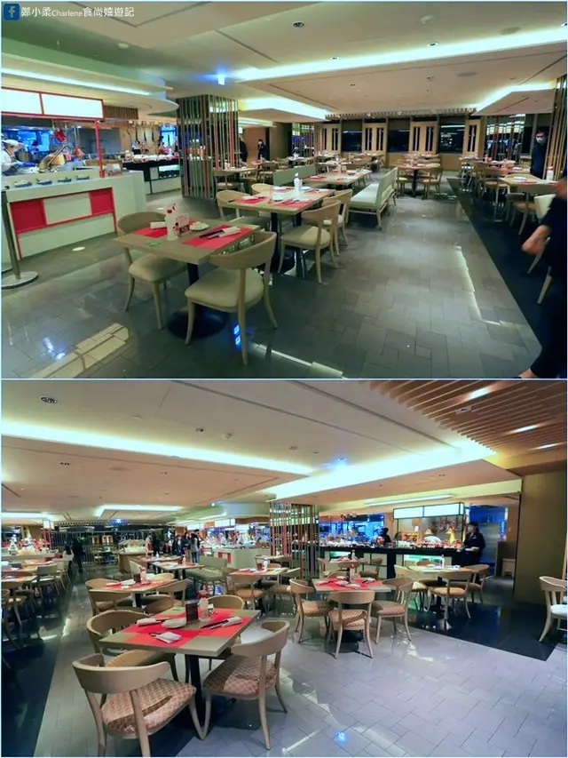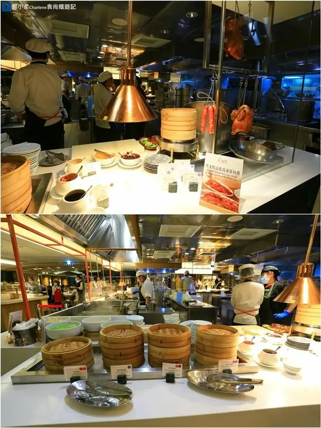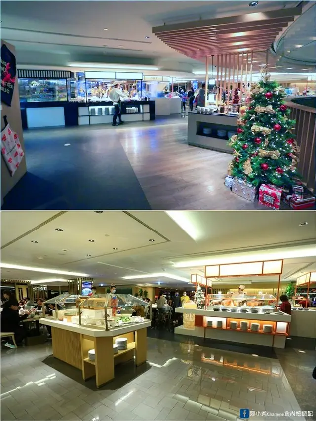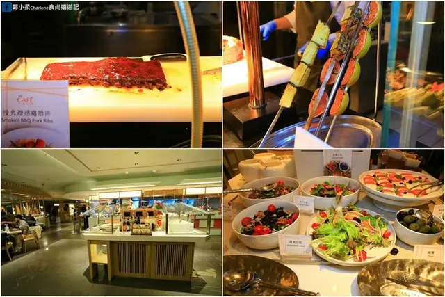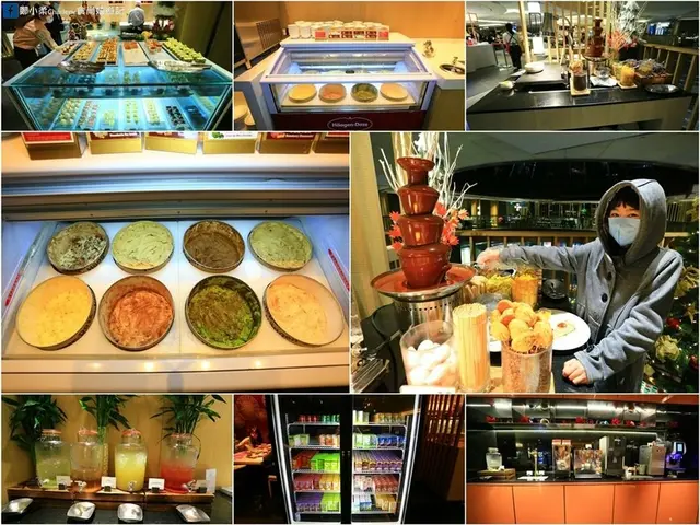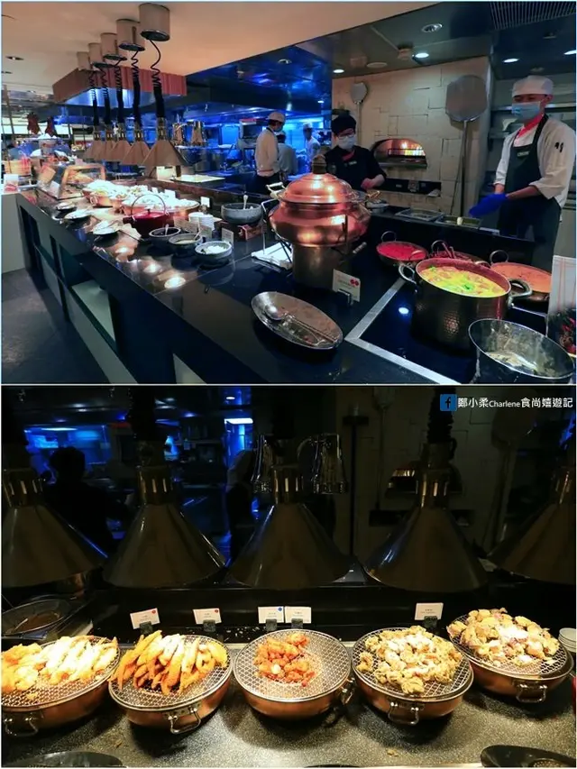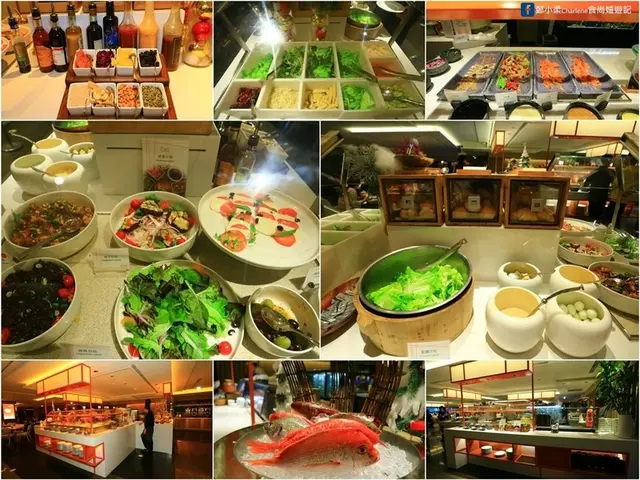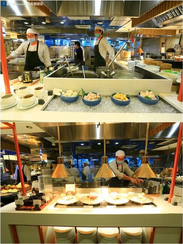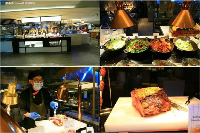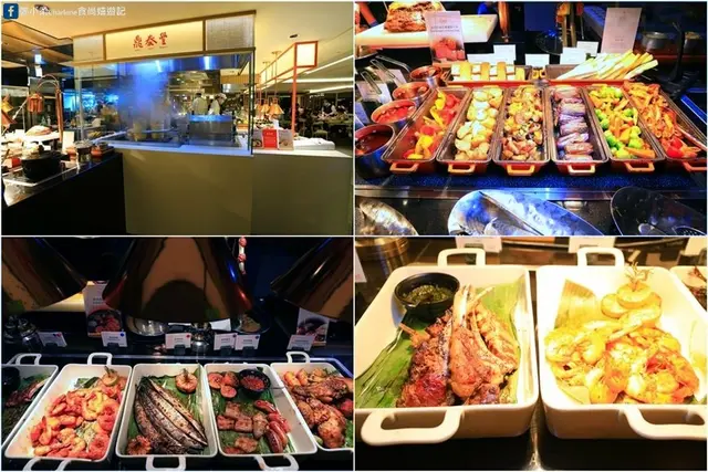 沙拉冷盤區、生猛海鮮區、日式料理區、現煮湯品/麵類區、甜點麵包區、冰淇淋櫃/水果區及飲品區等,