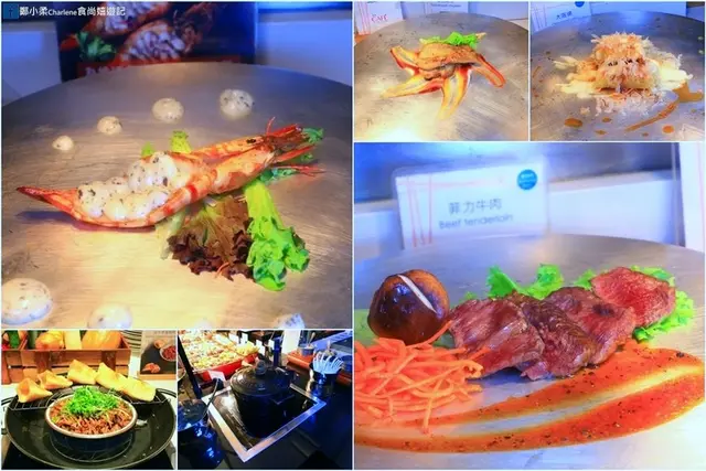 鐵板鴨肉、大阪燒、黑松露醬鐵板蝦、菲力牛肉、清炒時蔬、