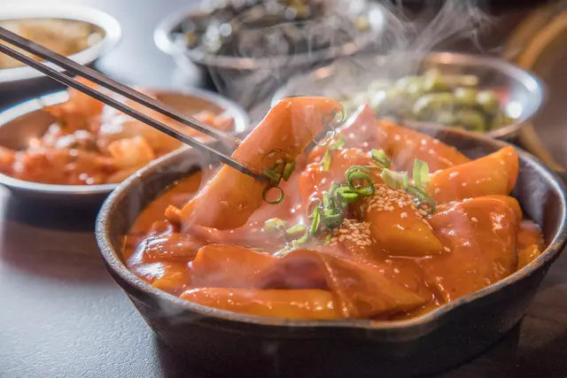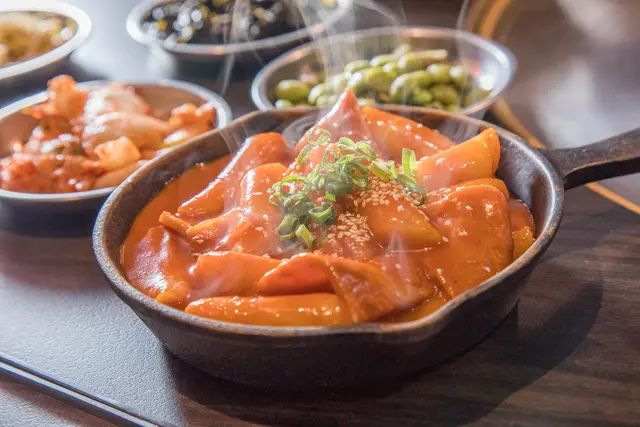 韓式經典阿珠嬤辣炒年糕的口味相當道地,醬汁比較甜,辣度較為溫和,年糕吃起來相當有彈性,裡面還有加韓國魚板,年糕沾裹濃稠甜辣的醬汁,很涮嘴!