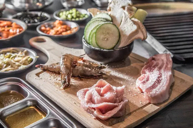 澳洲深海大花蝦、頂級黃金松阪豬、經典韓式豬五花、嚴選綜合蔬菜盤