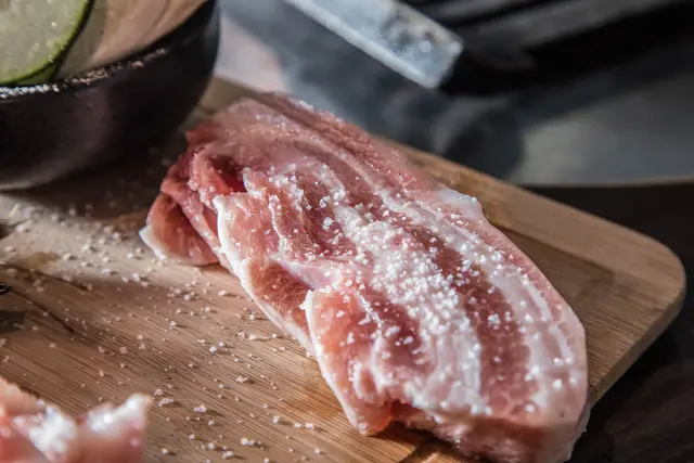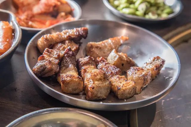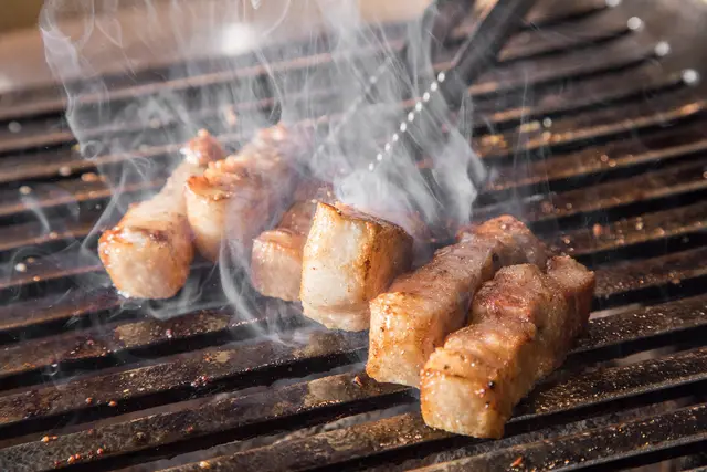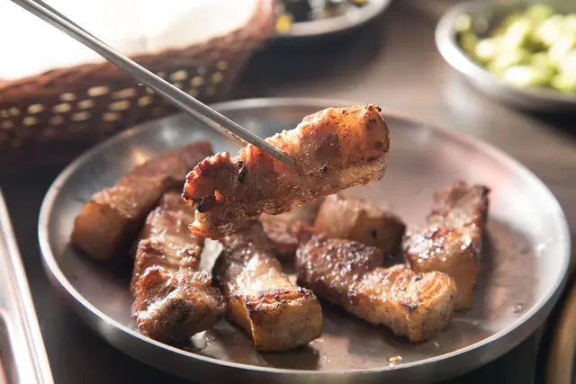豬五花吃上一口絕對會讓你感動到不行!僅撒上些許的鹽調味,入口卻是滿滿的肉汁甜味跟清爽的油脂感,邊緣焦脆的地方吃起來超香