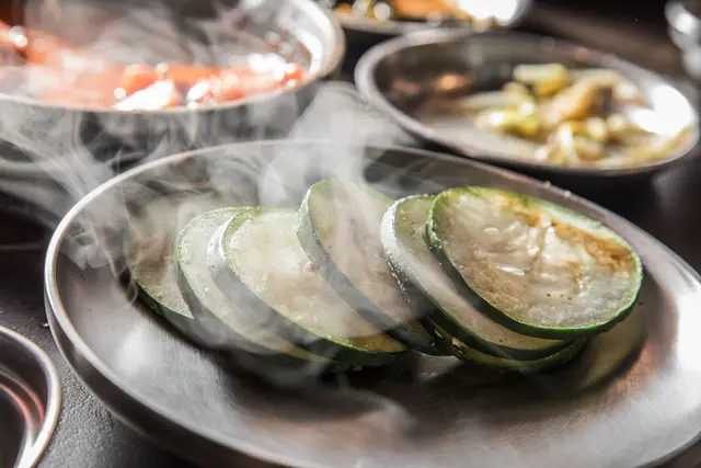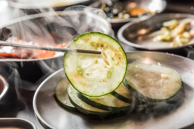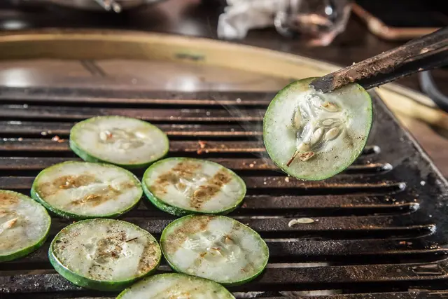 大黃瓜直接上爐燒烤,待表麵烤出水分,大黃瓜微軟就可以吃了,水嫩口感中還帶有些許甜脆的黃瓜香氣,清爽好吃!