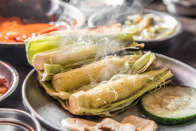 帶殼玉米筍,碩大的帶殼玉米筍,口感清脆水嫩,即使不加調味料,光靠玉米筍本身的甜度就夠好吃了!