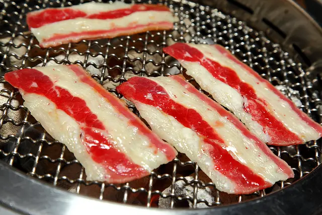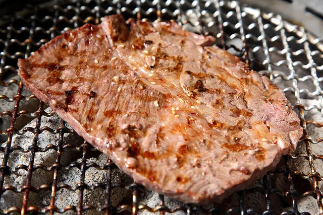 只要烤到單面出水,再翻面烤一下就可以了,雖說是基本盤,燒肉眾還是選用頂級的美牛五花
