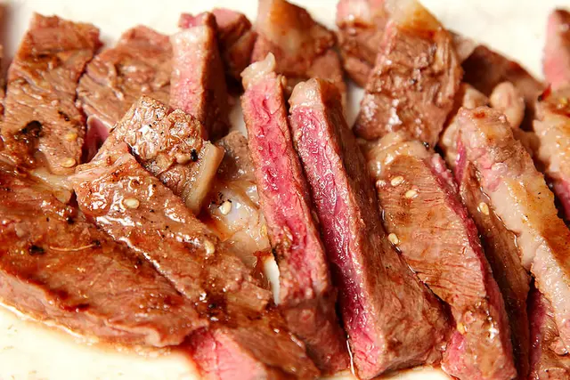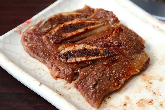 表面烤得微焦噴香,肉汁也多到不斷的從表面滲出,牛排脂肪經過炭烤散發出難於言喻的絕美香氣~