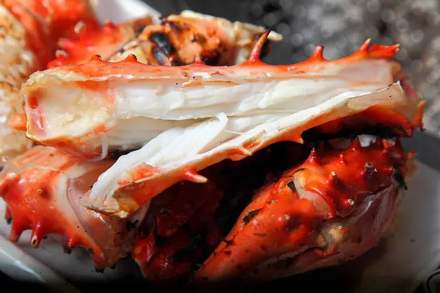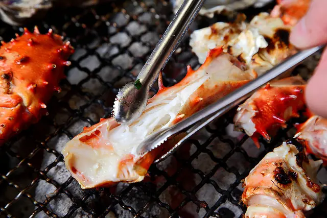 我們吃過煮過的帝王蟹腳,雖然口感比較水嫩多汁些,但甜度比啟用烤得真的差超多