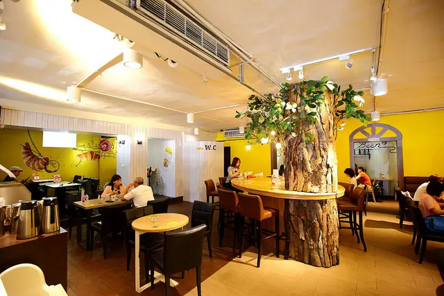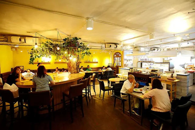 室內溫暖的黃光色調備感溫馨,店中還有一棵大樹造景,感覺還挺像到了童話世界中的部屋一般