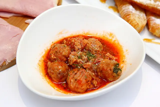 肉丸、肉醬、啤酒、帕瑪森起士製成的小肉丸