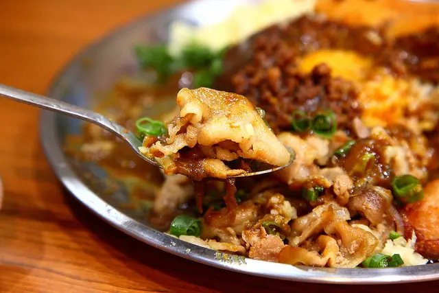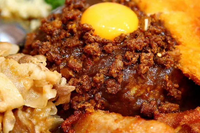 因為肉燥帶有油脂,跟蔬果長時間熬煮的咖哩醬相輔相成,起美味的化學變化,一杓一杓簡直停不下來!