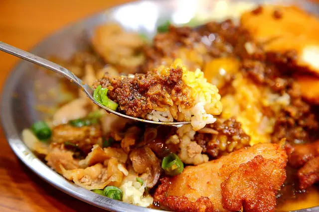 伴著底下熱呼呼的白飯,咖哩香混著肉燥香,光用聞的口水就流滿桌了啦