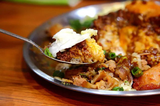 加入泡菜也是一絕,透過充滿果香氣的泡菜,原本濃郁的咖哩瞬間變得清爽起來,轉換一下味覺可以吃更多!