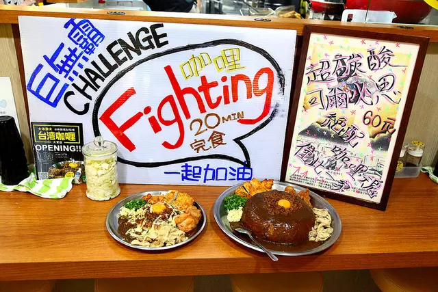 菜單右下角的1300公克巨無霸咖哩看起來超醒目,時限內吃完免費!