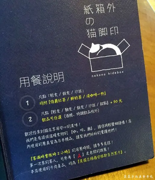 紙箱外的貓腳印主要提供一些簡餐輕食,算是一間咖啡廳,