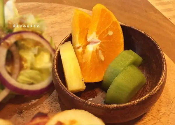 主餐吃完,旁邊還有富含營養素及纖維質的水果跟沙拉,