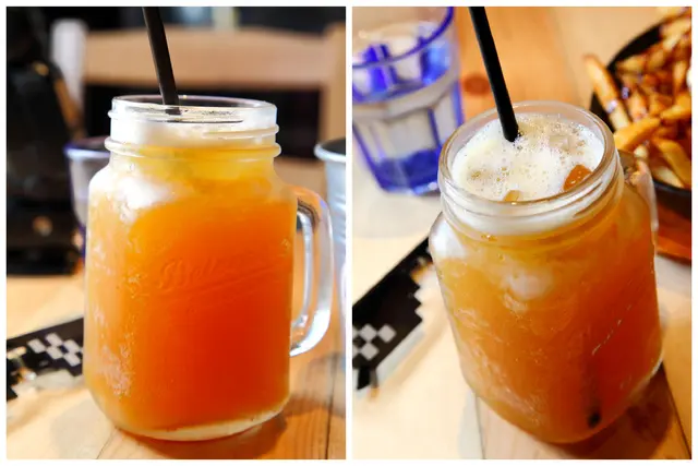 加價50元升級可選100元的飲料(超過補差價),咬咬點的是蜜澄冰果茶,是用自製的水果茶加上蜜澄醬調配而成,喝起來酸酸甜甜還有蜜澄的香氣,值得一提的是如果你選的是可樂、雪碧、紅茶、綠茶或是果茶都是無限暢飲!是不是超佛心的!