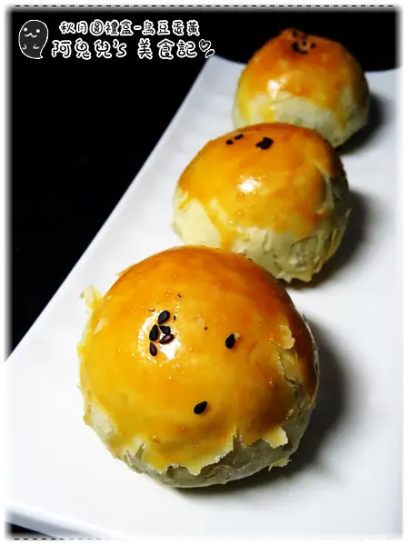 不過上頭是以白芝麻做記號,辨別出烏豆丹凰和綠豆蛋黃的差別。