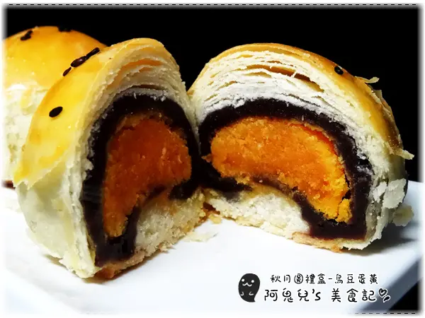 蛋黃與烏豆沙的比例和以往看到的月餅內餡不同,烏豆沙相對較少 讓蛋黃的鹹香味更明顯並使甜度降低,吃完以後也不會覺得甜膩。