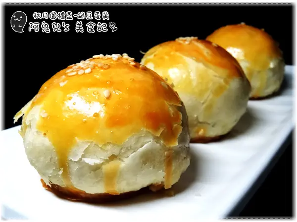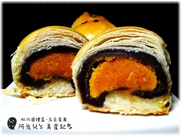烏豆蛋黃是月餅的經典口味之一,金黃色的外表看起來就很可口~ 不過用手拿起的時候,手上會沾到一點油,外層的油量可以少一點