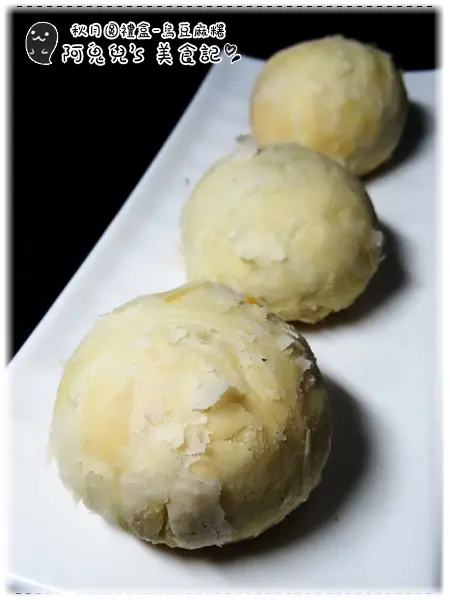 烏豆麻糬的外表和烏豆蛋黃不同,一開始還以為是綠豆椪耶(笑)