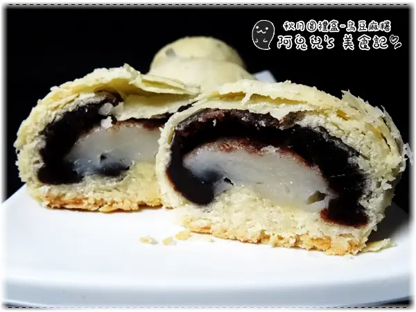 烏豆沙顏色較深,加上奶黃色的千層外皮,也凸顯了豆沙的光澤,
