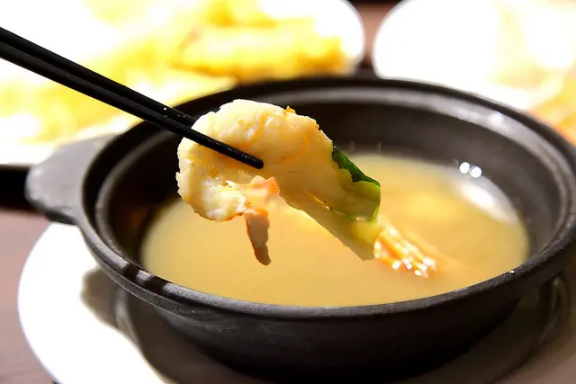 龍蝦湯是味噌湯底,蝦頭鮮味融入湯中相當鮮美