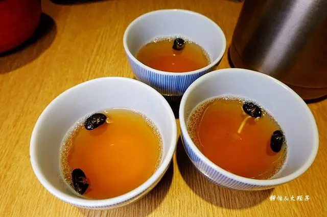 每桌上都會有一壺熱呼呼的黑豆茶,喝起來暖胃養生,放涼後也可以給孩子飲用喔!