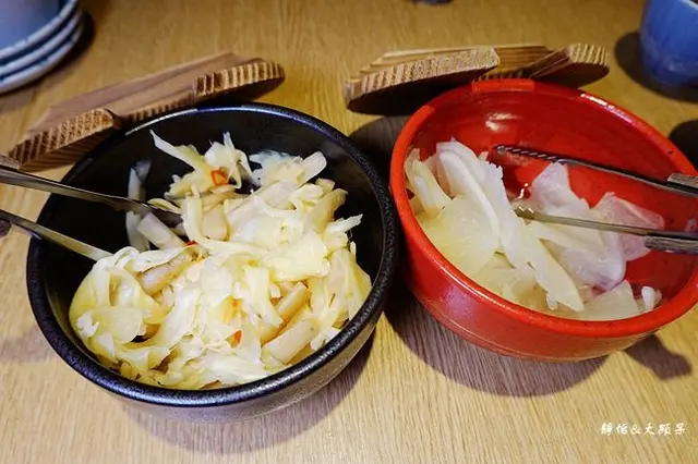 漬物擺放在桌上供客人自由取用,薑片及醃蘿蔔都好好吃,薑片還有加牛蒡,兩款漬物配丼飯超合拍,美味解膩
