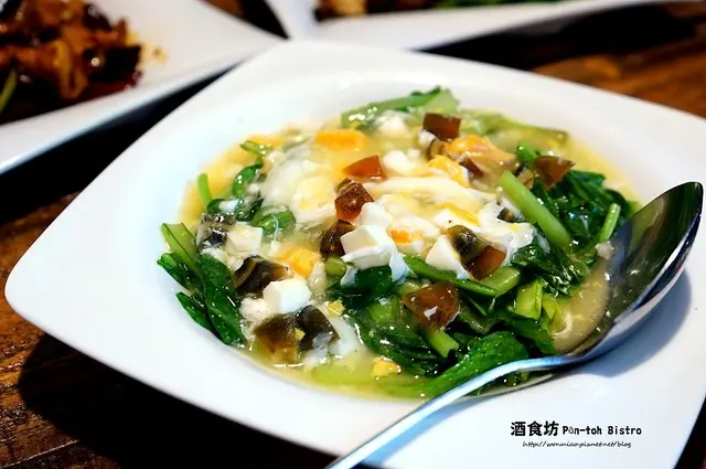 吃得到鹹蛋的香與皮蛋的鮮,咕溜滑潤的口感,完全顛覆了不喜歡蔬菜的味蕾,