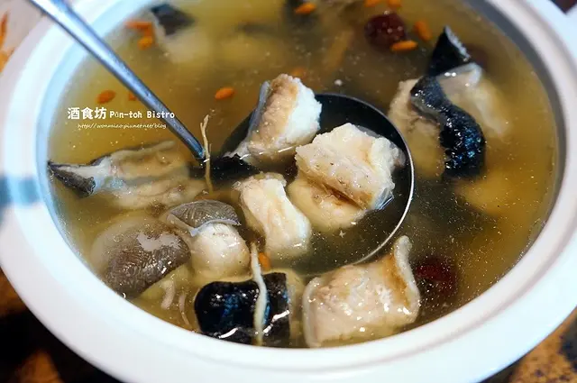壓軸的藥膳鱸鰻湯,切塊的鱸鰻加入中藥燉煮,