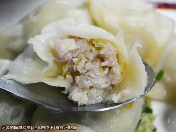我覺得「來來水餃館」的水餃能如此受歡迎,除了現擀手工餃子皮,口感Q彈具嚼勁,內餡真材實料,外觀渾圓飽滿,粒粒如元寶般外;獨特的大白菜清甜內餡口感,且比一般餃子更少油、少鹽,也是讓越來越注重飲食健康的台北都會人們,會喜愛的原因囉~