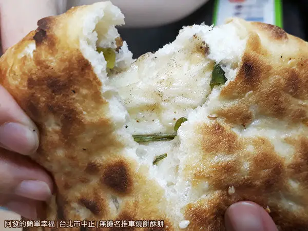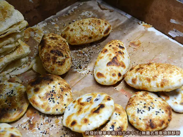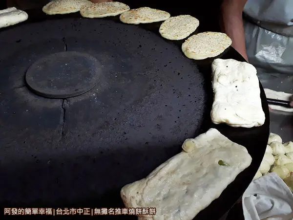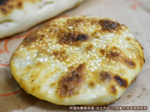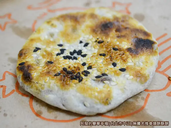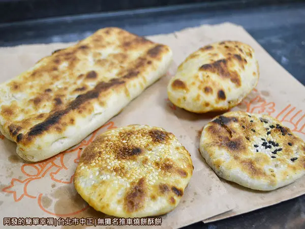 到了南機場夜市後,想起多年前我們這家好奇寶寶走在夜市內,看到夜市的末端,排著長長人龍才湊過去,結果一吃,覺得古早烙烤餅香十足的「無攤名推車燒餅‧酥餅」。