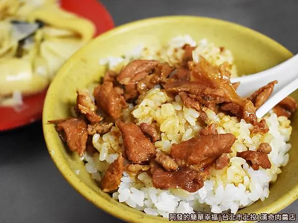 阿發必須承認對北投美食不熟,走在捷運站旁的光明街上,老遠就看到這家店前大排長龍,於是老婆上網查了一下,這家「漢奇肉羹店」在google上有一千多則評論,平均獲得4.1顆星,因此當天我們的午餐就決定是它了~