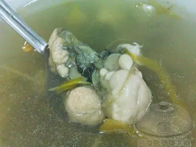▲由於攤子賣的都是油炸的小吃,於是點了一碗清蚵湯來喝,以防小吃太油。