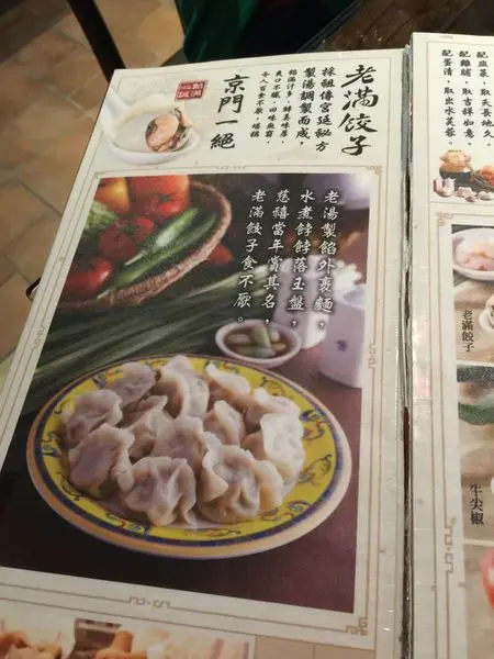 這家餡老滿餐廳,是同事訂的午宴。初聽此名字就覺得很有畫面感。後來知道它以北方餃子與麵食和老北京小吃出名,更加深了我對它的期盼。餡老滿在台北市共有二家餐廳,一家在仁愛路,而此次前往的則是位於南港軟體園區經貿二路的店面。由於位在辦公大樓內,所以一進入所在層樓後,第一眼所見便是很有辦公FU的感覺。