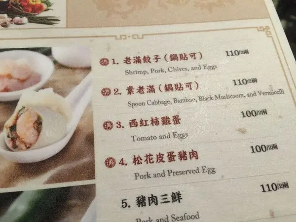 開始點菜囉,看來滿這個字在餡老滿所佔的地位很大啊,連菜單都有滿字,人滿財滿吧。