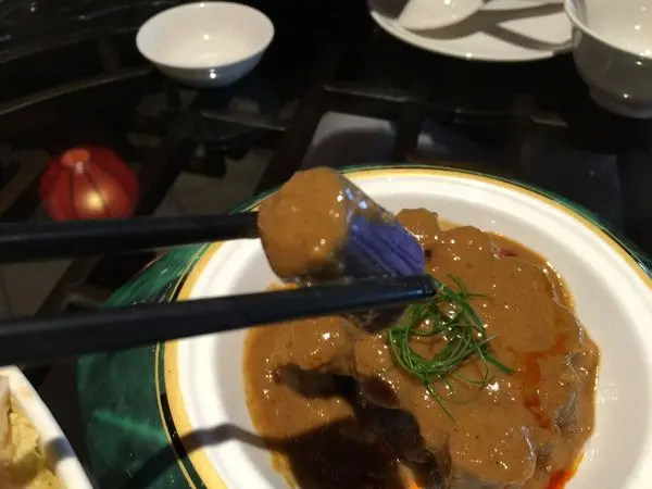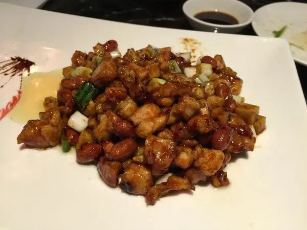 屬主菜的極品雞丁,這菜可惜了,因為雖然在菜單上標榜辣味,但實際吃後,我和同事都覺得只有些微辣度,且油度頗高,再加上調味又有甜味,所以更容易膩。