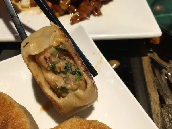 這鍋貼的外觀我還蠻喜歡的,感覺小巧金黃。吃入口裡的心得是,嘿嘿,有些鹹咧。