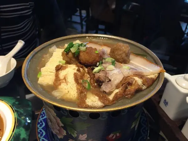 將酸白菜和豆皮及豬肉丸等食材共同入煮,其實就是酸白菜火鍋。湯頭的味道頗佳,酸度不會過酸,老母雞熬煮的湯頭不會過油,這湯推薦啊。