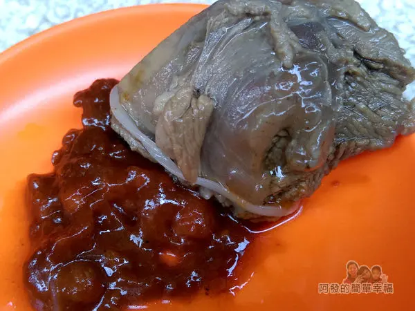 岡山豆瓣醬加上醬油膏,所調製而成的沾醬,沾上一些,讓羊肉塊吃起來更加味美